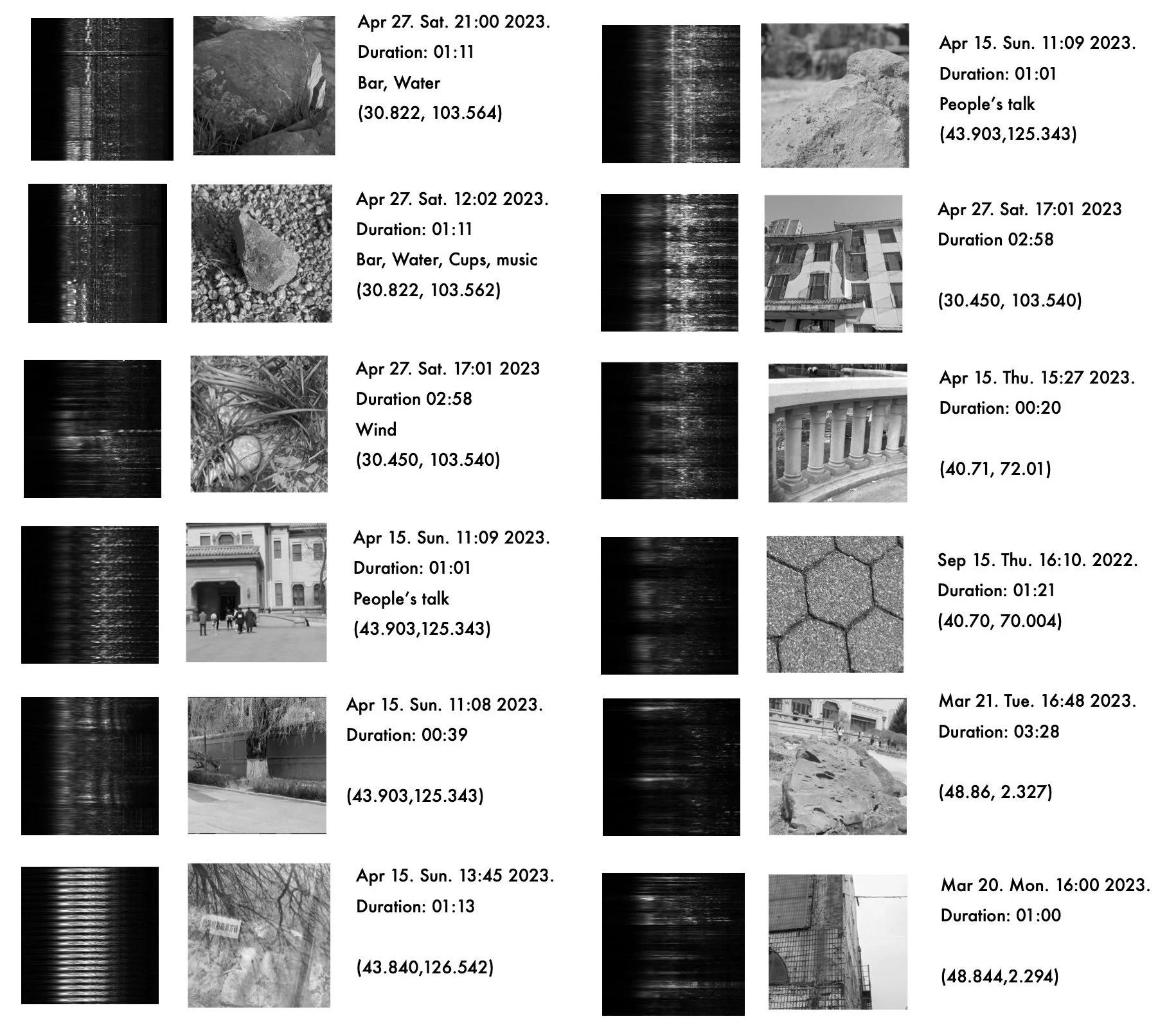 By Content — a corporeal practice of recording the sounds of stones “aging” in different places around the world. These recordings are then translated into visual forms, allowing sound, time, and matter to be re-experienced as images.