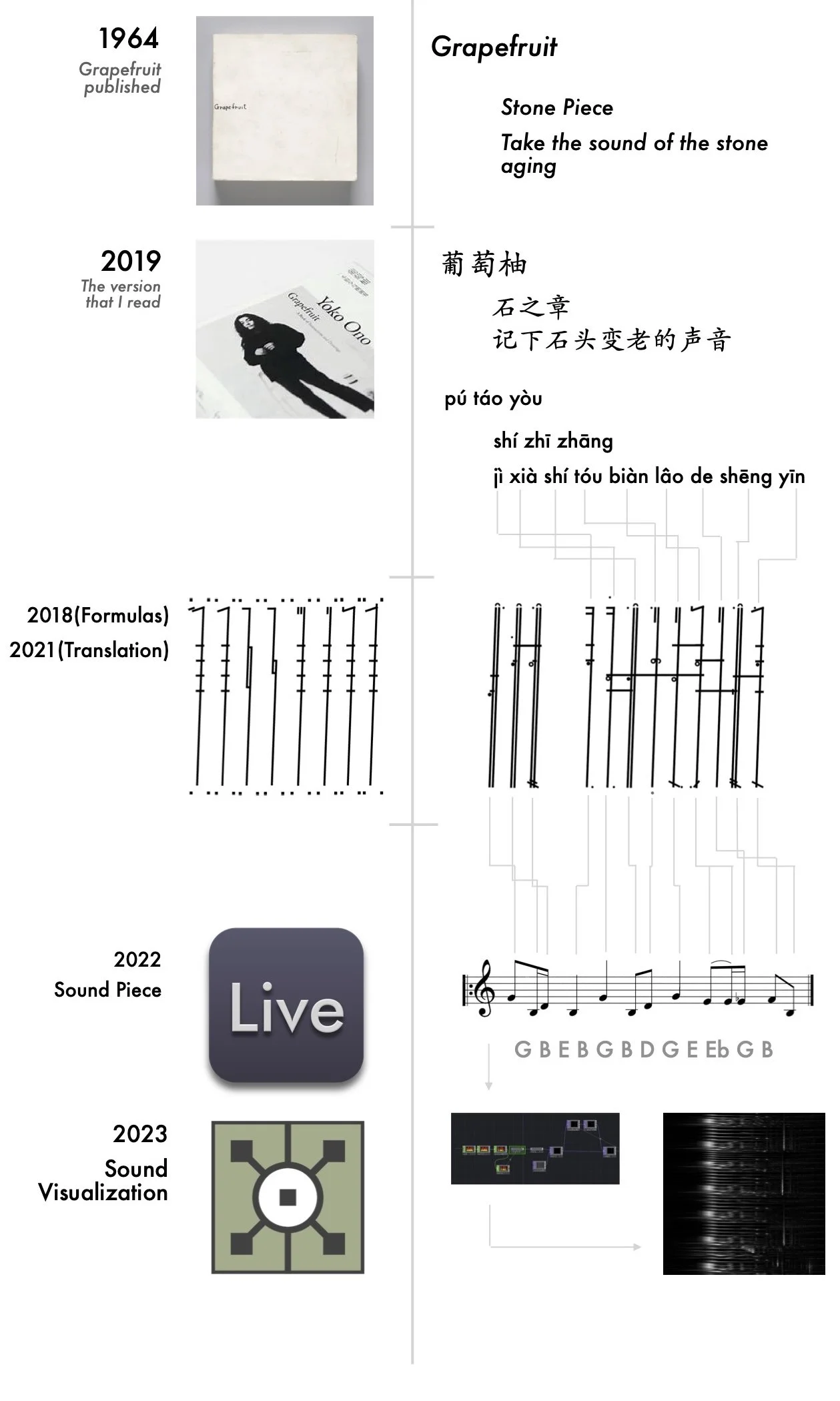 Stone Piece extends from my long-term project Lie, in which I created a language based on Chinese pronunciation to examine what remains and what changes in processes of translation. Here, I take Lie as a medium to engage with Yoko Ono’s poem Stone Piece from Grapefruit.